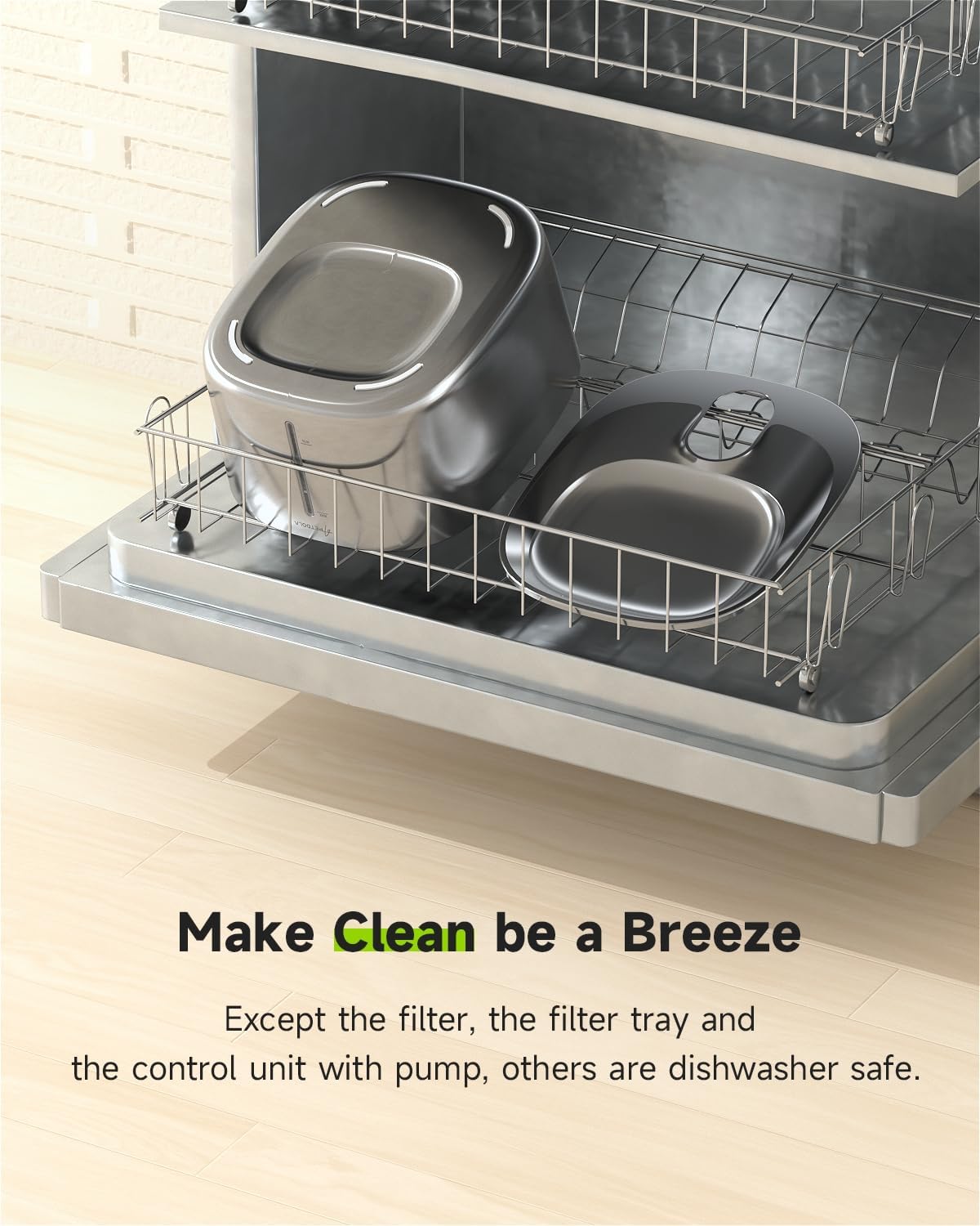 Runs up to 60–100 days on a single charge (in sensor or timer mode), so your cat stays hydrated even during power outages or weekend getaways.