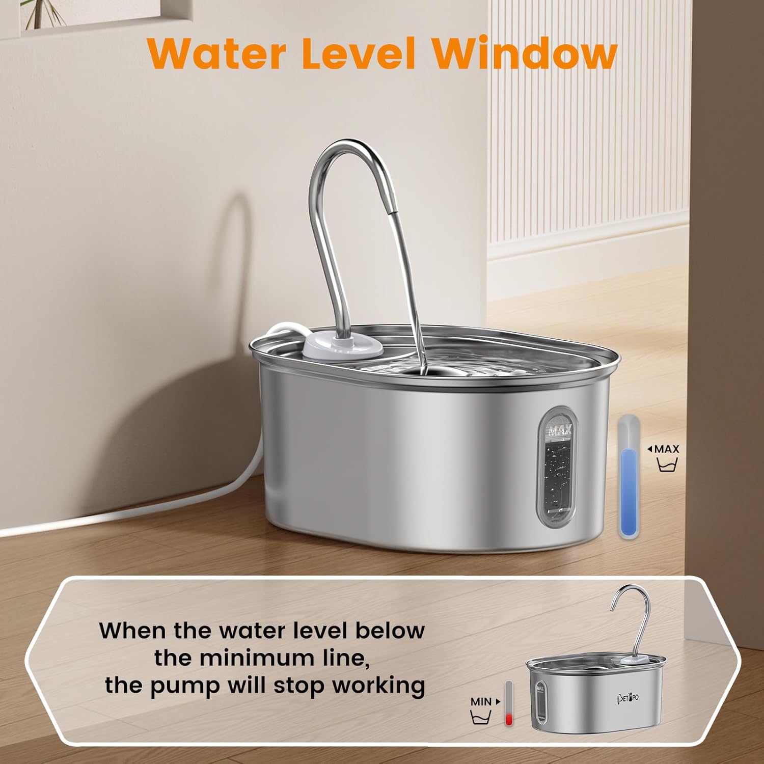 Stainless Steel Cat Fountain – 0.8 Gal / 108 oz | Sleek, Silent, & Floof-Friendly