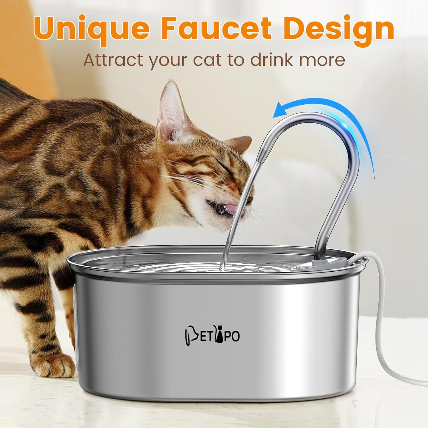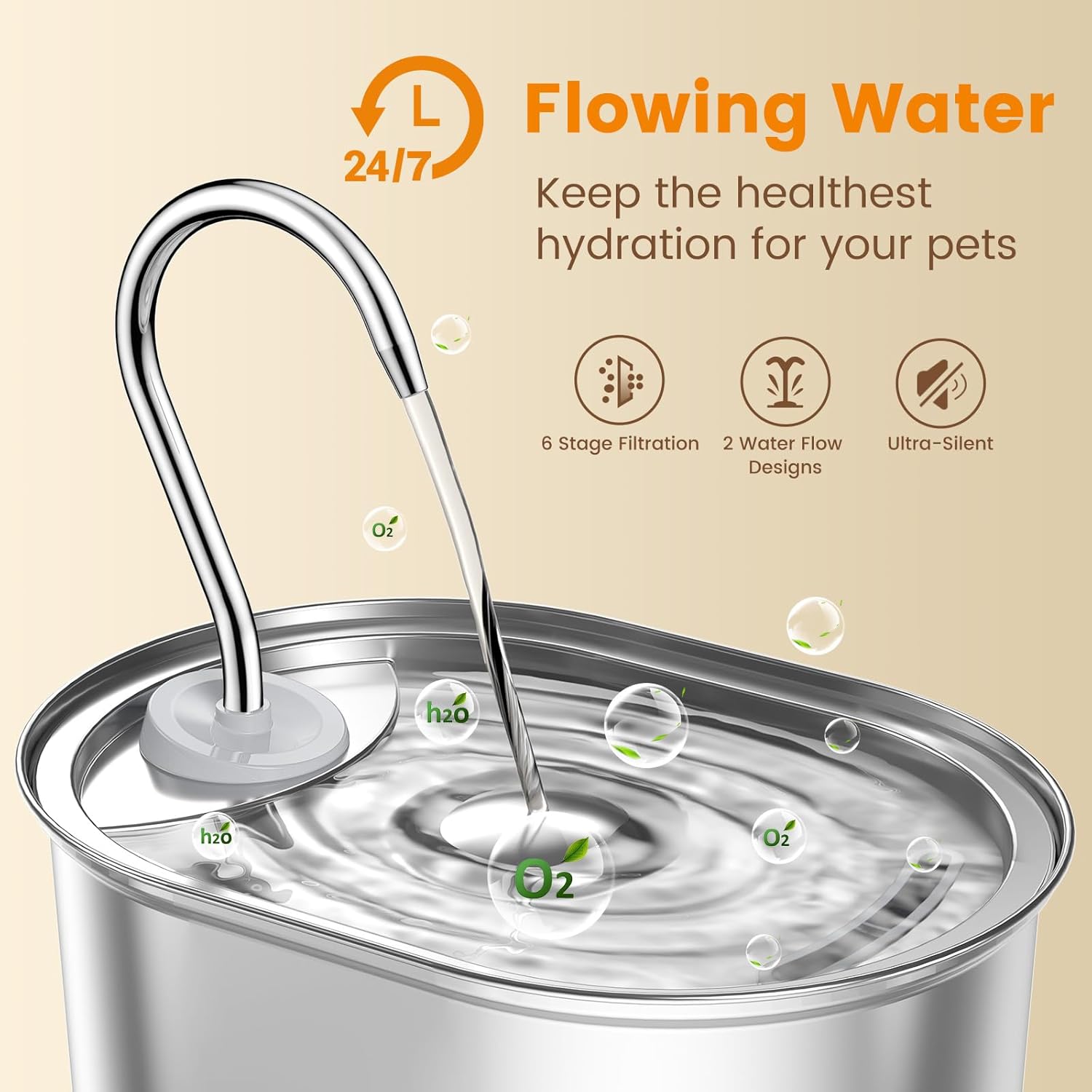Keep hydration classy with this food-grade 304 stainless steel cat fountain—safer, tougher, and way more stylish than plastic bowls. With a 3.2L (108oz) capacity, it's perfect for multi-cat homes or busy hoomans who want low-maintenance hydration done right.