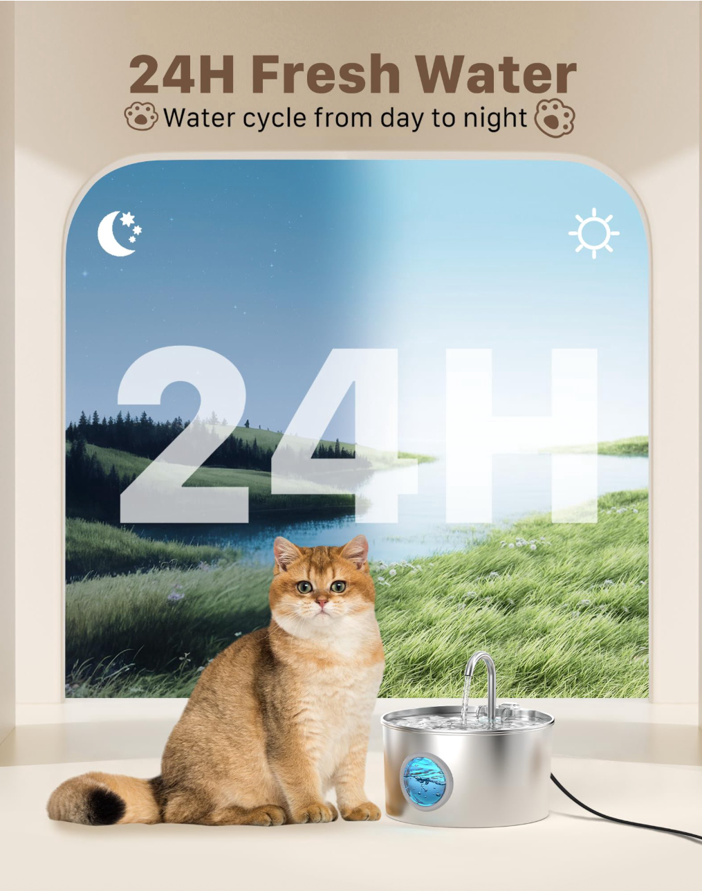 Made from durable SUS 304 stainless steel, this fountain is rust-resistant, easy to clean, and built to last—ensuring a hygienic and safe water source for your pet.
