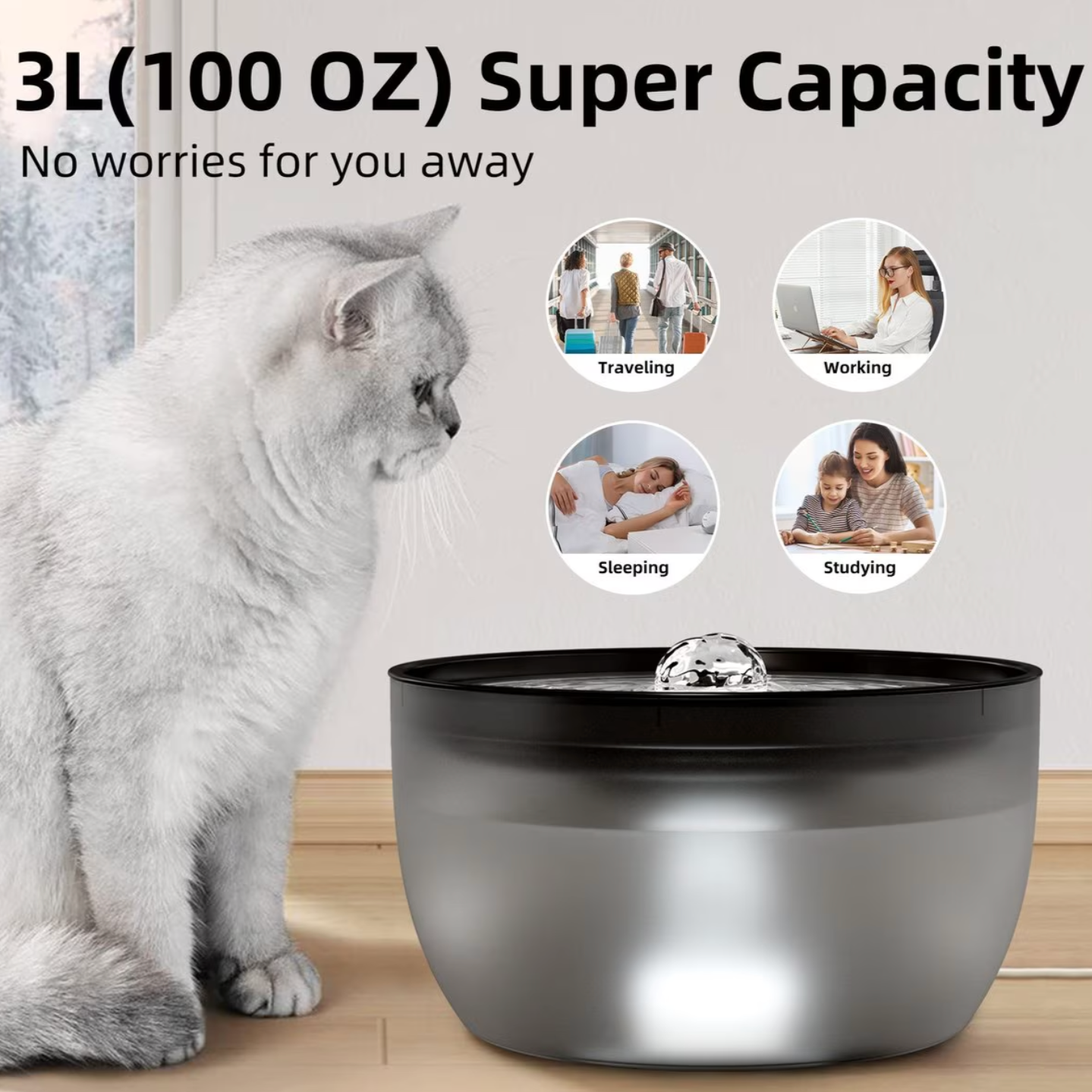 3L Ultra-Quiet Stainless Steel Cat Fountain | Frosted Bowl + Easy Setup